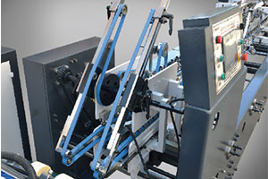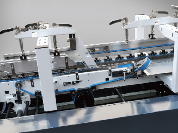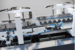 本折部 本折配有上傳動,折紙皮帶糾正功能, 加長工作部,使盒子成型更加穩(wěn)定 |