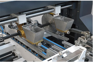 勾底部 三板式結(jié)構(gòu), 配有上打膠使勾底盒自動(dòng)上膠成型。 整個(gè)底折附件安裝在可翻轉(zhuǎn)支架上, 充分減少底折與其它盒型互換調(diào)整時(shí)間。 |
